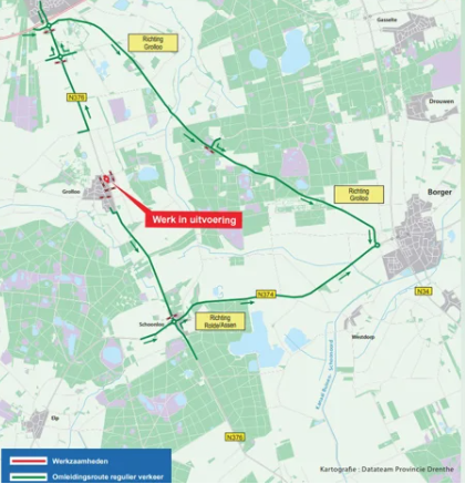 De Provincie Drenthe zal komend weekend werkzaamheden aan de N376 in Grolloo laten verrichten. Het gaat om het weggedeelte van de weg van Rolde naar Schoonloo tussen hectometerpaal 11.950 en 12.085.